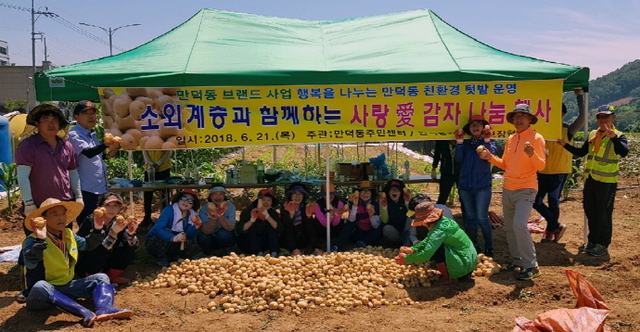 만덕동에 따르면 지난 21일 친환경 텃밭에서 감자를 수확하는 ‘사랑愛 감자 나눔 행사’가 열렸다.