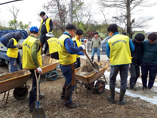 전북 김제시 성덕면 희망드림 복지기동원들이 21일 독거노인 세대를 방문해 마당 시멘트 공사 봉사 활동을 실시했다.