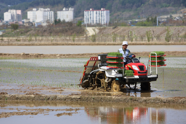 강원 인제지역 ‘첫 모내기’가 30일 북면 원통8리 김대인씨 논에서 시작됐다.