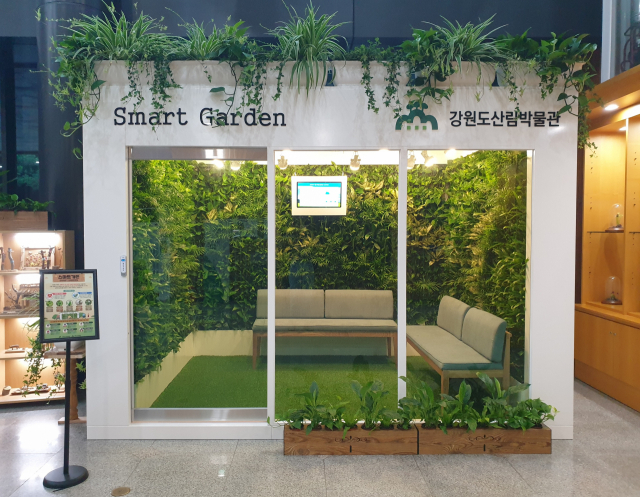 강원도산림과학연구원은 산림박물관 로비 실내공간에 공기정화 효과가 큰 식물과 자동화관리 기술을 도입한 큐브형 실내정원인 ‘스마트가든’을 조성하고 관람객들에게 무료 이용토록 했다.