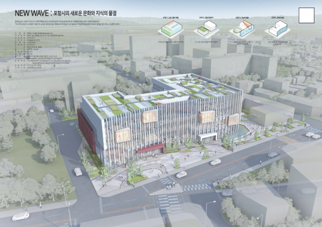 공공도서관 및 현장지원센터는 연면적 1만2천 제곱미터 규모(지하1층, 지상4층)의 국비 254억을 포함한 총 442억원이 투입되는 사업으로, 지난 24일 ㈜건축사사무소 ‘림’ 외 2개사의 건축 설계안이 일반공모로 선정됐다. 당선작은 다양한 프로그램의 명확한 기능분배를 위한 프로그램별 합리적 조닝을 통한 편리한 동선계획을 수립했으며 향과 조망을 고려한 배치 및 각층을 연결하는 하모니 스텝은 사용자의 자유로운 독서환경을 제안해 좋은 평가를 받았다.