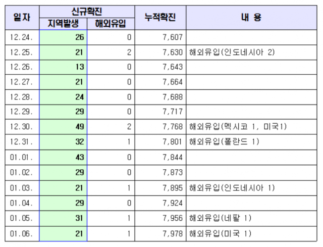 대구시 관계자는 “최근 일상생활 속 감염 사례가 늘고 있으며, 특히 무증상 감염자로 인한 조용한 전파로 인해, 가족, 지인, 직장 등 ‘아는 사람끼리 만나면 괜찮겠지’라는 작은 방심이 대규모 유행으로 전개될 수도 있다"며 "현재 시가 추진 중인 ‘연초 특별방역대책’에 대한 시민들의 동참이 매우 절실하다”고 호소했다.