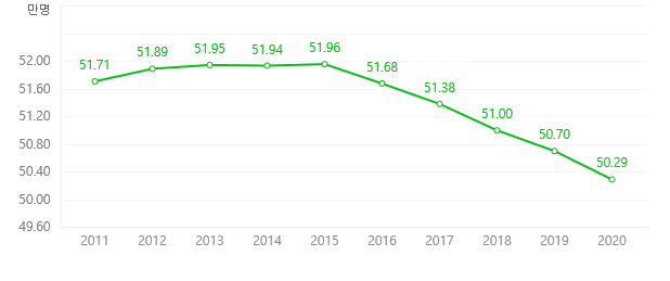 2020년 말 기준 포항시 주민등록 인구는 50만 2976명으로 50만 인구 붕괴가 눈앞에 다가왔다. 이는 현 이강덕 포항시장이 취임한 지난 2014년 7월 이후 1만 6천여 명이 감소한 수치다.