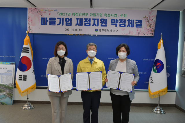 광주 서구(구청장 서대석)가 행정안전부에서 지정하는 2021년 마을기업 육성사업에 2개사(신규 1, 재지정 1)가 최종 선정되어 지원 약정을 체결했다고 8일 밝혔다.