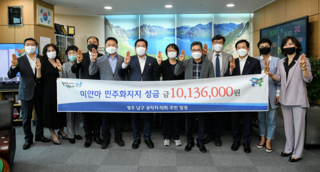 광주 남구(구청장 김병내) 관내에서 미얀마 민주화 운동을 응원하는 마음이 성금으로 모아져 현지 활동가 등에 전달된다.
