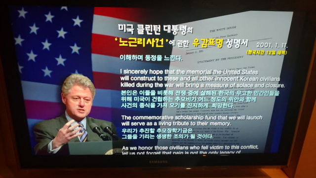 이 같은 과정을 상세히 적어놓은 노근리 평화공원기념관의 설명문 앞에 서자, 다른 희생자들을 위해 눈앞의 물질적 혜택을 거부한 노근리 피해자들과 유족들의 숭고한 정신에 나도 모르게 존경의 묵념을 하지 않을 수 없었다. 한국 정부는 2004년 노근리 희생 심사 및 명예회복 특별법을 제정해 희생자 심사를 하고 노근리평화공원을 조성했다.
