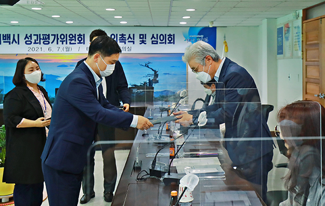 강원 태백시(시장 류태호)는 지난 7일 시청 소회의실에서 남진우 부시장 주재로 태백시 제3기 성과평가위원을 위촉하고 올해 성과관리 실행계획(안)을 심의·의결하기 위한 성과평가위원회를 개최했다.