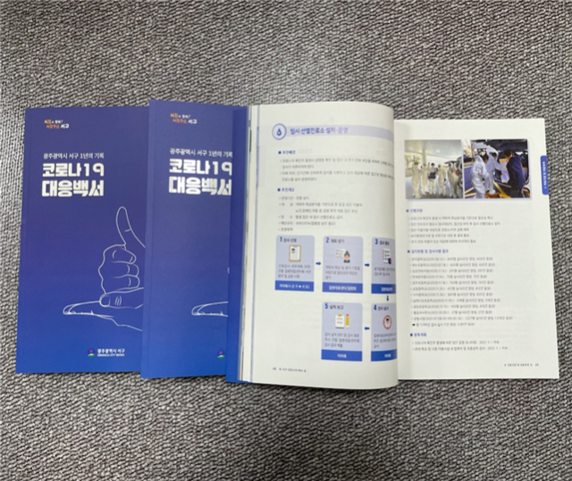 구성은 ▲1장 코로나19 발생(한눈에 보는 타임라인 세부일지 등) ▲제2장 대응과정 및 대응체계 ▲제3장 코로나19 지역감염 확산 차단을 위한 선제적 활동 ▲제4장 코로나19로 인한 위기가구 지원 ▲제5장 지역경제 위기극복을 위한 노력 ▲제6장 향후과제, 언론에서 본 서구, 수범사례 등으로 사진과 글로 상세히 기술했다.