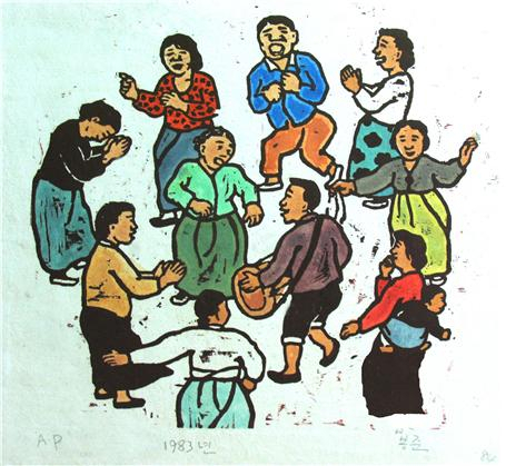 그렇다, 나는 미술에서 새 리듬을 찾고 있었다. 탈춤 품물 등 몸에서 우려나오는 리듬을 찾고 있었다. 이 신명의 리듬은 붓가락으로도 찾을 수 있겠다는 막연한 기대가 싹트기 시작했다.
