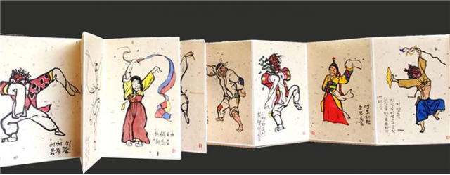 산골 생활 30년을 돌아보면 주력했던 공부가 있다. 탈을 그리다가 우리 겨레붓을 나 는 좀더 자유롭고 익숙하게 다뤄야 했기에 이 황모장필로 고구려벽화, 조선초상화, 풍속화, 산수화 등을 수 년간 독공했다. 마침 동아일보 연재 하일지 판 아라비안나이트 신문삽화 2년, 매일경제, 영남일보에서 소설 삽화 의뢰가 들어와 3년간 근 1000장의 조선 붓으로 그린 삽화도 도움이 되었다. 이 붓그림 공부를 하면서 느낀 것은 고구려벽화에 쓰던 붓이 이런 황모장필 붓이었다는 확신과 닥종지에 황모필이 우리 회화의 원형질이었다는 것을 알았다. 이것이 점점 흐르며 조선의 무화 불화 민화 풍속화 진경산수화로 확산되며 조선 회화의 주류를 이룬 것이다. 서로 다르지 않음을 알았고 이어지고 있음도 알겠다. 붓을 어디를 쥐고 어떻게 쓰느냐의 차이이지 거의 같은 붓, 동이족의 붓 내림이었다.