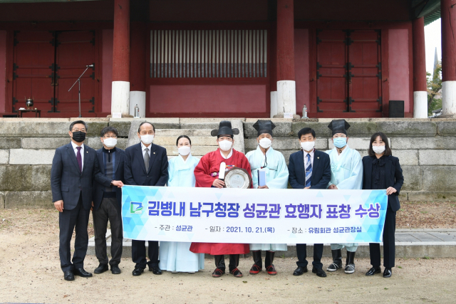 손진우 성균관장은 “평소 돈후한 품성과 투철한 사명감으로 경로사상을 실천하고 효행문화 장려에 솔선수범해 지역사회에서 효행을 칭송함이 자자해 효행자 표창장을 수여하게 됐다”고 말했다.