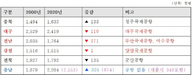 게다가 "전북에 국제공항이 없어서 인구가 외부로 유출돼 감소하고, 국제공항이 있어야만 인구가 유입되고 지역소멸을 막을 수 있을 것처럼 주장하지만 이 역시 실제와 많이 다르다"면서 "지역 국제공항들이 입지한 4개 지자체들의 인구 증감을 살펴보면 국제공항 개항 이후 인구가 증가한 지역은 충청북도 밖에 없으며, 나머지 전라남도, 강원도, 대구광역시는 모두 인구가 많이 감소했다"고 주장했다.