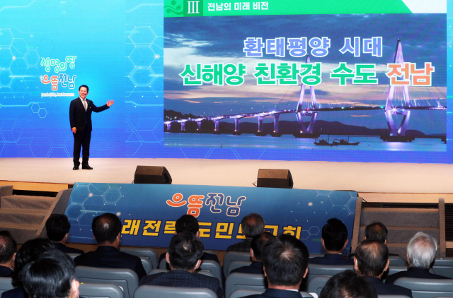 이날 김영록 전남도지사가 발표한 ‘으뜸전남 미래전략’은 ‘신 해양·문화관광·친환경 수도 전남’의 비전 아래 8대 추진 전략, 69개 과제(핵심과제 34개·지역발전과제 26개·제도개선 건의 9개), 82조 원 규모로 구성됐다. 지난 9월 발표한 전남발전 정책과제를 다듬고 보완해 완성했다.