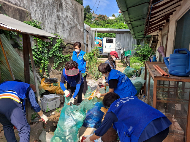 지난 7월에는 거동이 불편한 80대 어르신 집안과 마당에 10여 년간 쌓여 있던 묵은 쓰레기를 정리하기도 했다.
