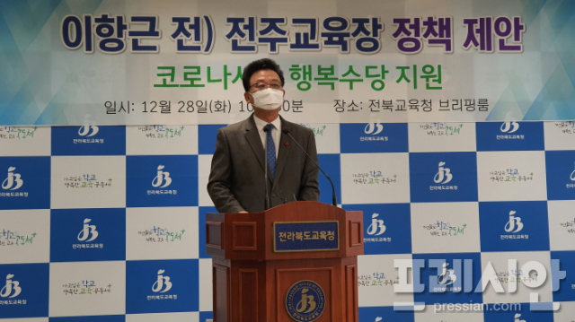 이항근 전북교육감 출마예정자는 28일, 전북교육청에서 기자회견을 갖고 "전북교육청이 학생행복을 중요정책으로 설정하고 학생들에게 다양한 문화 활동을 지원하는 행복수당 도입을 검토해야 한다"고 제안했다.