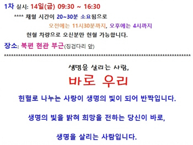 전북도교육청 인성건강과 최재호 주무관은 도교육청이 헌혈행사를 진행할 때마다 수시로 헌혈을 독려하는 메세지를 보내고 있다.