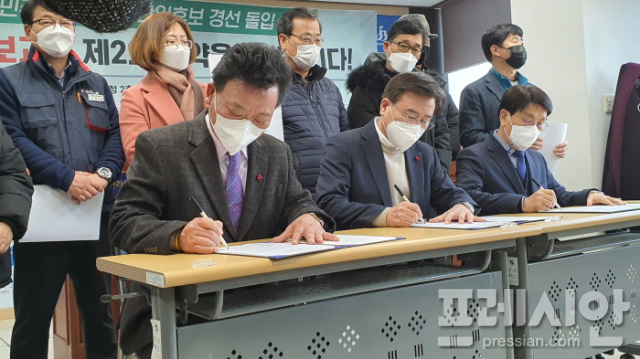 이어 단일화에 참여한 세 후보는 서약식을 가졌다.