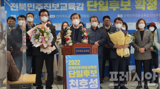 전북민주진보 교육감 단일화 선출위는 21일, 전북교육청에서 기자회견을 갖고 단일후보로 천호성 전주교대교수가 확정됐다고발표했다.