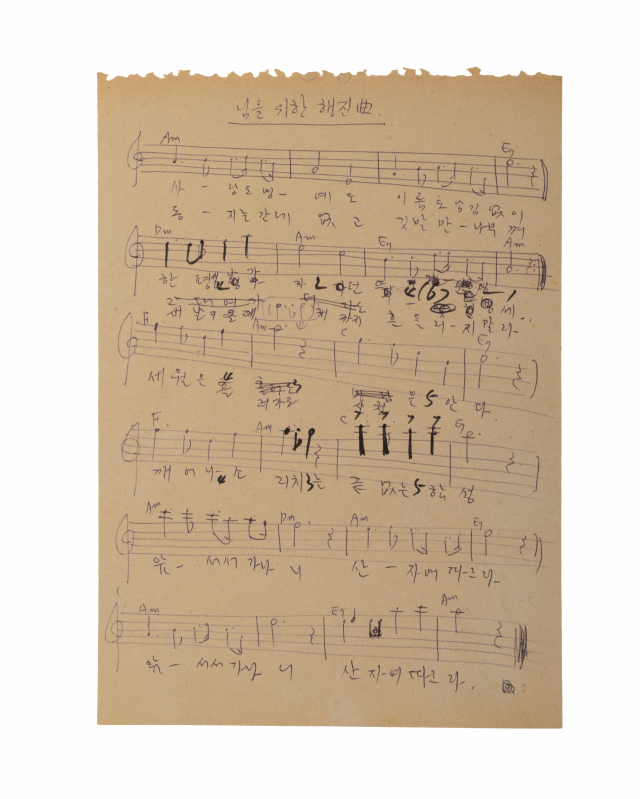 음악 이론상, 대부분의 행진곡은 장조로 작곡되며 밝고 경쾌한 것이 특징이다. 나는 이런 일반적인 방법에서 벗어나고 싶었다. 과감하게 ‘님을위한행진곡’은 단조로 표현했다. 단조의 행진곡은 장엄하고 웅장하며 슬프고도 유장한 맛이 있다.