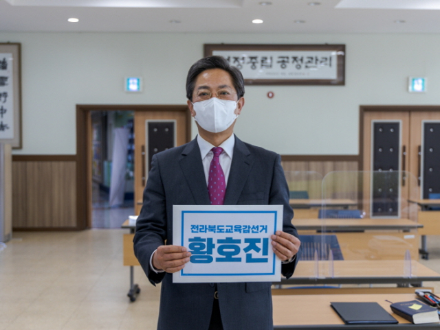 황호진 예비후보는 이날 예비후보등록을 마치고 "전북교육이 바로서야 지속가능한 전북의 미래가 열린다"며 이를 위해선 "전북교육 시스템의 근본적인 혁신과 변화가 필요하다"고 강조했다.