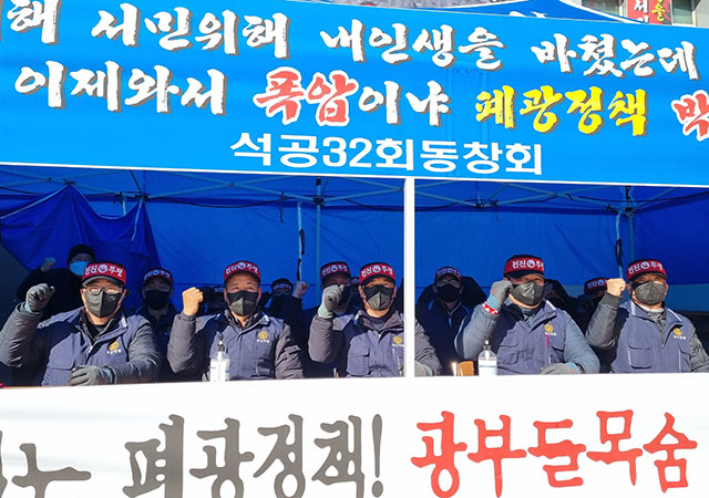 석공노조는 지난해 12월29일 산업통상자원부의 제6차 석탄산업장기계획 공고에서 2016년부터 이어진 기능조정 대상기관을 그대로 유지하면서도 폐광 이후 대책이 전무하다며 반발해 왔다.