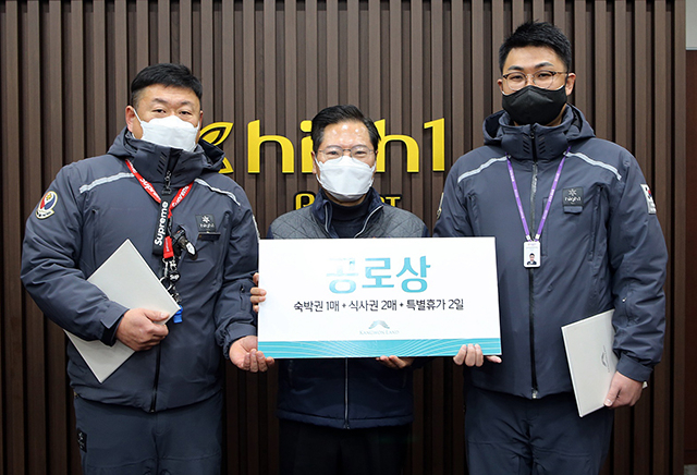 두 직원은 “하이원은 공기업으로서 국민의 안전을 중요한 가치로 여기고 안전한 관광지를 만드는 데 최선을 다하고 있다”며 “앞으로도 이러한 사명감을 갖고 근무할 것이며 올해부터 시행되는 중대재해법에 걸맞은 책임 있는 자세로 업무에 임하겠다”고 말했다.