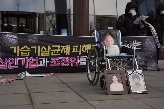 "2011년 2월28일에 남편이 원인 모를 폐 질환으로 사망했습니다. 뉴스를 보고야 남편이 가습기 살균제 때문에 사망했음을 알았습니다. 여태껏 10년이 넘게 거리를 다니고, 배·보상이 이제야 이루어지는가 했더니 기업을 이길 수가 없습니다."