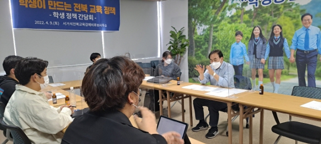 서 예비후보는 9일 전북지역 학생대표단과 홈페이지를 통한 참여 신청자 등 10여 명의 학생들이 참석한 가운데 학생정책 간담회를 가졌다.