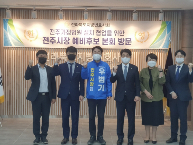 우 예비후보는 15일 전북지방변호사회(이하 전북변회)와 만난 자리에서 "전주시민들의 재판받을 권리를 온전히 보장하기 위한 가정법원 설치 필요성에 공감한다"며 "가정법원 설치를 위해 전북변회와 적극적으로 협력해나갈 것"이라고 말했다.