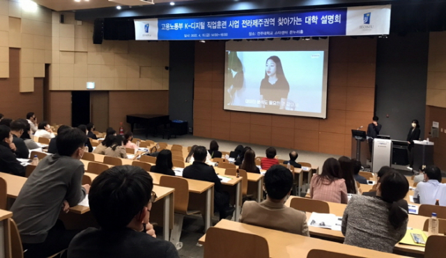 전주대학교 대학일자리플러스센터는 고용노동부 주관 K-디지털 직업훈련 사업 찾아가는 권역별 대학 설명회를 15일 스타센터 온누리홀에서 개최했다고 밝혔다.