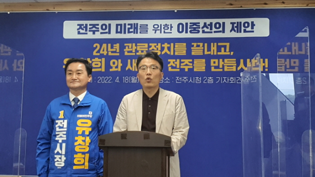 18일 이중선 전 전주시장 예비후보는 전주시청에서 기자회견을 갖고 "24년 행정 관료출신 시정을 끝내기 위해 유창희 후보를 지지하게 됐다"고 밝혔다.