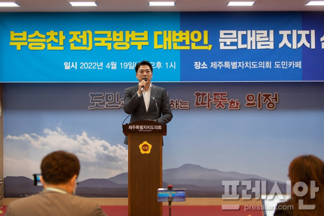 부승찬 전 국방부 대변인이 오는 6월 1일 지방 선거에 나서는 문대림 제주도지사 예비후보 지지를 선언했다.