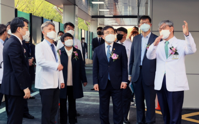 이날 보고회는 권덕철 보건복지부장관, 조봉업 전북도행정부지사 등 관계내빈과 김동원 전북대병원 이사장(전북대총장), 유희철 병원장, 이식 진료처장, 양종철 기획조정실장, 이창섭 감염관리센터장 등 병원 임직원이 참석한 가운데 개원경과보고와 감염관리센터 순회 등의 순으로 진행됐다.