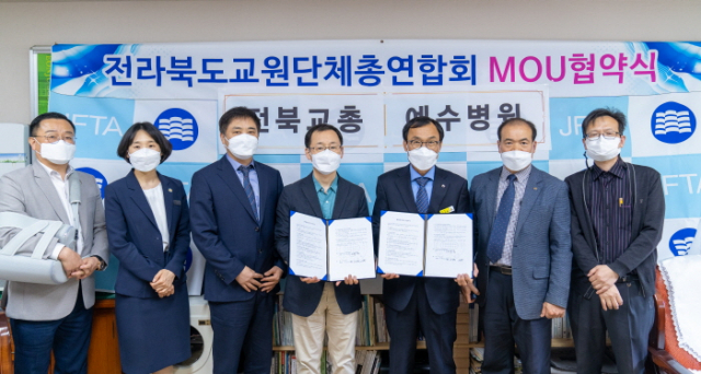 전라북도교원단체총연합회(이하 전북교총, 회장 이기종)와 전주예수병원(병원장 김철 승)은 20일 교총 회원가족의 건강과 복지증진을 위한 업무협약(MOU)을 체결했다.