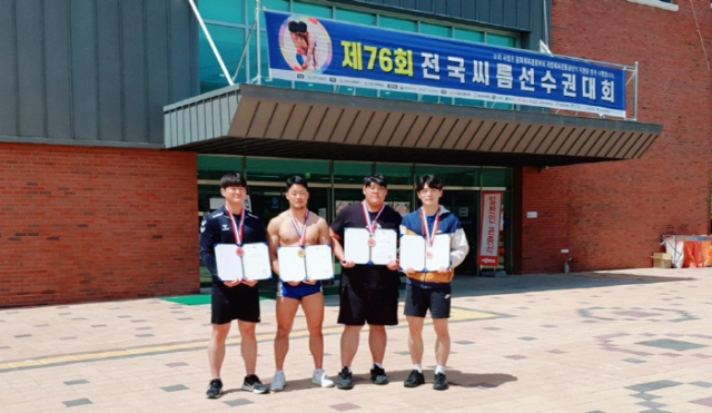 전주대 씨름부가 지난 20일부터 강원도 인제군 원통체육관에서 개최된 제76회 전국씨름선수권대회에서 금메달 1개와 동메달 3개를 따냈다.