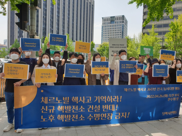 체르노빌 핵사고 36년을 맞아 전국의 환경단체들이 국내 신규 핵발전소 건설 반대, 노후 핵발전소 수명연장 금지를 촉구하는 기자회견을 진행했다.