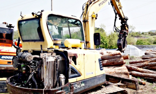벌목 공사 현장에서 작업중이던 집게 포크레인에서 불 소동이 빚어졌다.