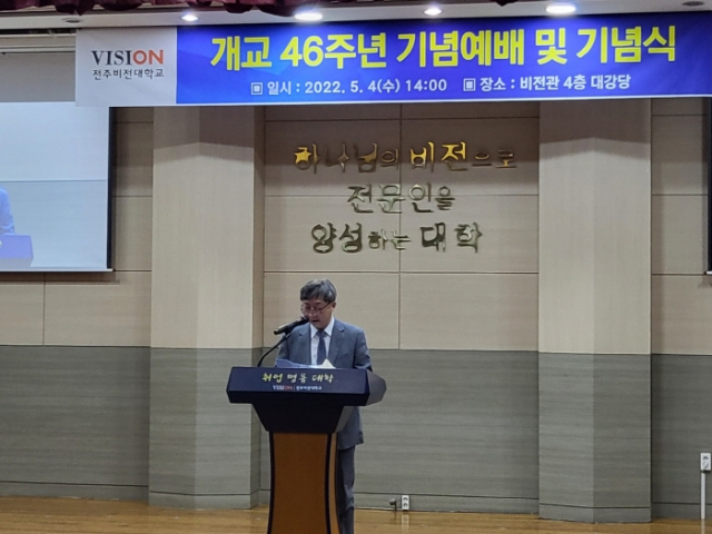 전주비전대학교(총장 정상모)는 4일 비전관 4층 대강당에서 '개교 46주년 기념식'을 가졌다.