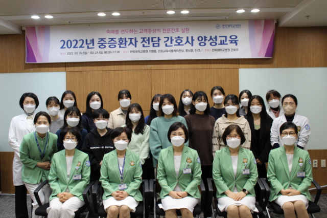 전북대병원(원장 유희철) 간호부가 14명의 간호사를 대상으로 중증환자 전담 간호사 양성 교육을 실시했다.