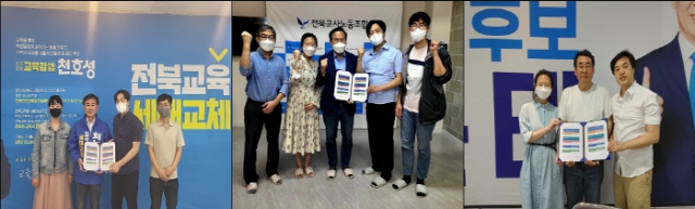 전북교사노조는 지난 19일부터 23일까지 3명의 교육감 후보에게 5가지 공약을 제안했으며 이가운데 "‘교행완박’, ‘학생생활지도 조례’, ‘수업지원교사제 확대’, ‘자율학교 50% 확대’에는 모두 찬성으로 긍정적인 답변을 ‘교원노조 보조금 조례 제정’에 대해서는 천호성, 김윤태 후보가 찬성을 서거석 후보는 신중하게 검토하겠다는 입장을 보였다"고 25일 밝혔다.