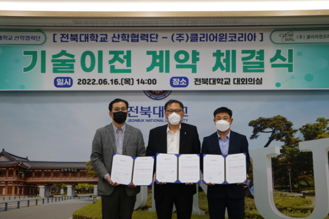 전북대 산학협력단은 16일 ㈜클리어윈코리아(대표이사 김유철)와 기술이전 계약을 체결했다.