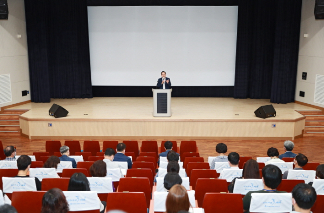 도교육청 창조나래 시청각실에서 열린 이날 직원조회에는 본청 근무 직원 250여 명이 참석해 신임 교육감의 교육철학과 비전에 대해 공유하는 시간을 가졌다.