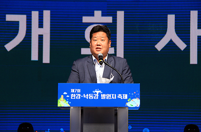 ▲지난달 29일 태백문화광장에서 열린 발원지 축제의 개회사를 하고 있는 이상호 태백시장. ⓒ태백시