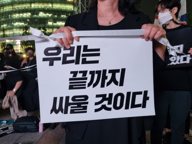 22일 오후 7시, 서울 종로구 보신각 앞에 검은 옷의 시민들이 모여들었다. 검정색 옷과 대비되는 하얀색 리본을 패용한 채, 시민들은 '어디도 안전하지 않았다', '우리는 끝까지 싸울 것이다' 등의 문구가 적힌 피켓을 치켜들었다.