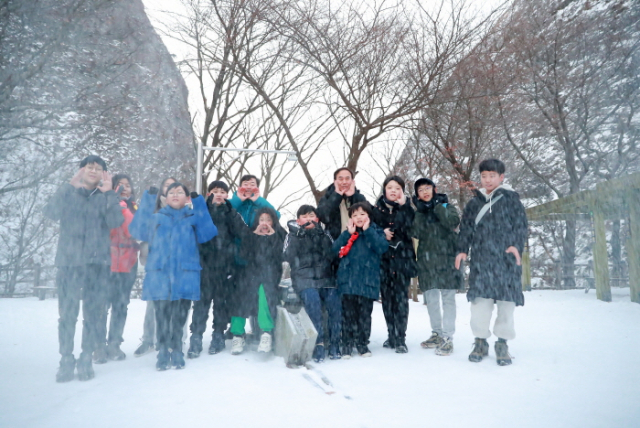 학생들은 눈길과 긴 계단에 힘들어 하는 친구를 이끌어 줬고 서 교육감도 학생들의 손을 잡고 보조를 맞췄다.
