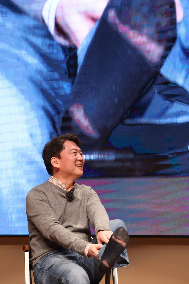 이에 대해 안 의원은 "사실 보여주고 싶지 않았는데 많은 분들이, 청중까지 포함해서 보여달라고 말씀하셔서 할 수 없이 보여드렸다"며 "저는 사실 (헤진 양말을) 보여드리는 게 목적이 아니고 물건들을 아껴쓰고 모은 재산 1500억 원을 기부했다는 말을 드리고 싶었다"고 했다.