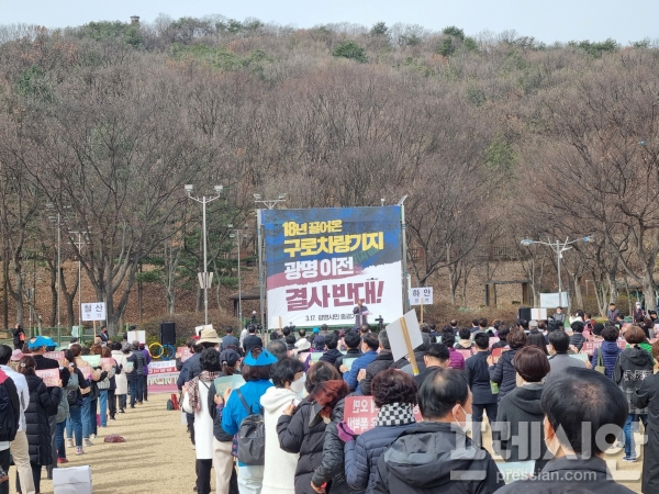 또 다른 시민은 "구로차량기지가 이전하는 곳 근처에는 참매를 비롯한 천연기념물과 멸종위기 식물까지 다양한 생태계가 꾸려져 있다. 환경 파괴 행위를 좌시할 수 없어 오늘 이 자리에 왔다"고 말했다.