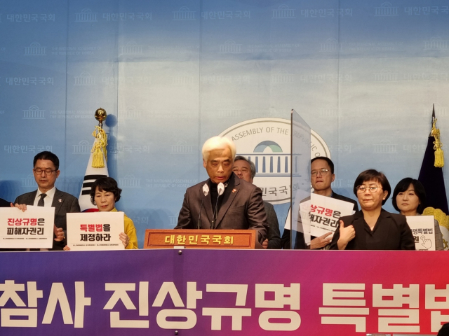 이날 기자회견엔 더불어민주당, 정의당, 기본소득당 등 야당 측 의원들도 참여했다. 민주당 박주민 의원, 정의당 장혜영 의원, 기본소득당 용혜인 상임대표는 "특별법 제정에 힘을 모아 달라"며 "국회도 빠른 (특별법) 입법을 위해 최선을 다 하겠다"고 입을 모았다.