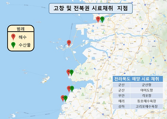 한편, 한빛원전 환경안전 감시센터 고창분소는 지난 2020년부터 고창해역(상하 고리포, 해리 동호)과 전북 일부 해역에 대한 감마, 삼중수소 등 방사능 분석과 고창해수, 해저토, 토양, 식수, 관내 유통 농수산물 등의 다양한 시료 분석을 수행하고 있다.