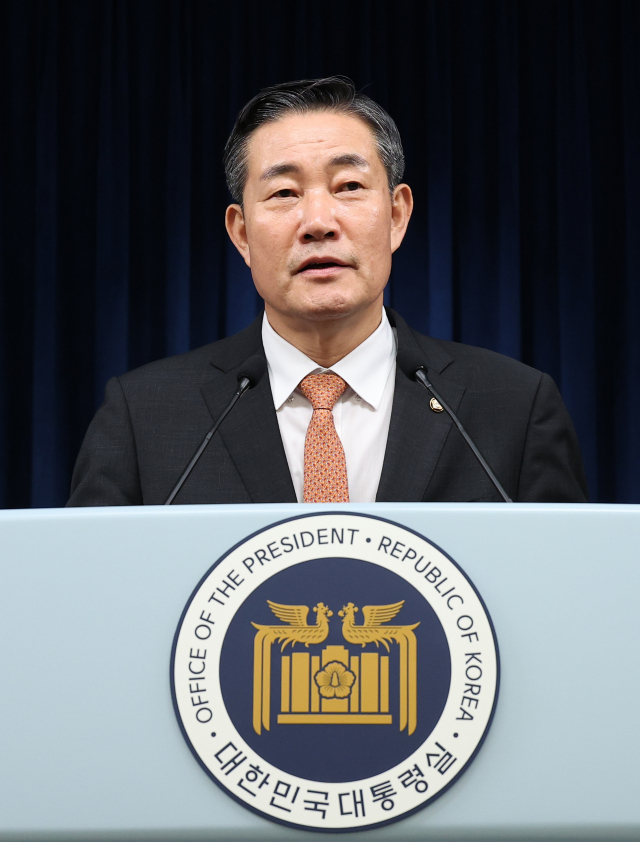 ▲신원식 국방부 장관 후보자가 지난 13일 서울 용산 대통령실 청사에서 열린 김대기 대통령 비서실장의 2차 개각 발표 브리핑에서 소감을 밝히고 있다. ⓒ연합뉴스